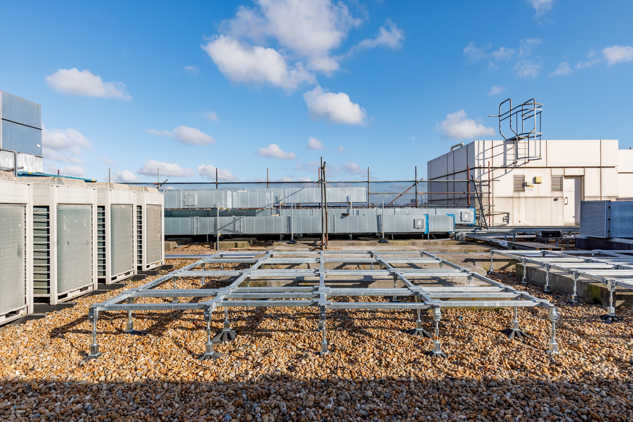 A key aspect of this refurbishment involved designing and installing a robust support system for the hospital’s 6 new Air Handling Units (AHUs). Adequate support was crucial to prevent vibrations from affecting the roof structure and ensure the AHUs’ longevity and performance.