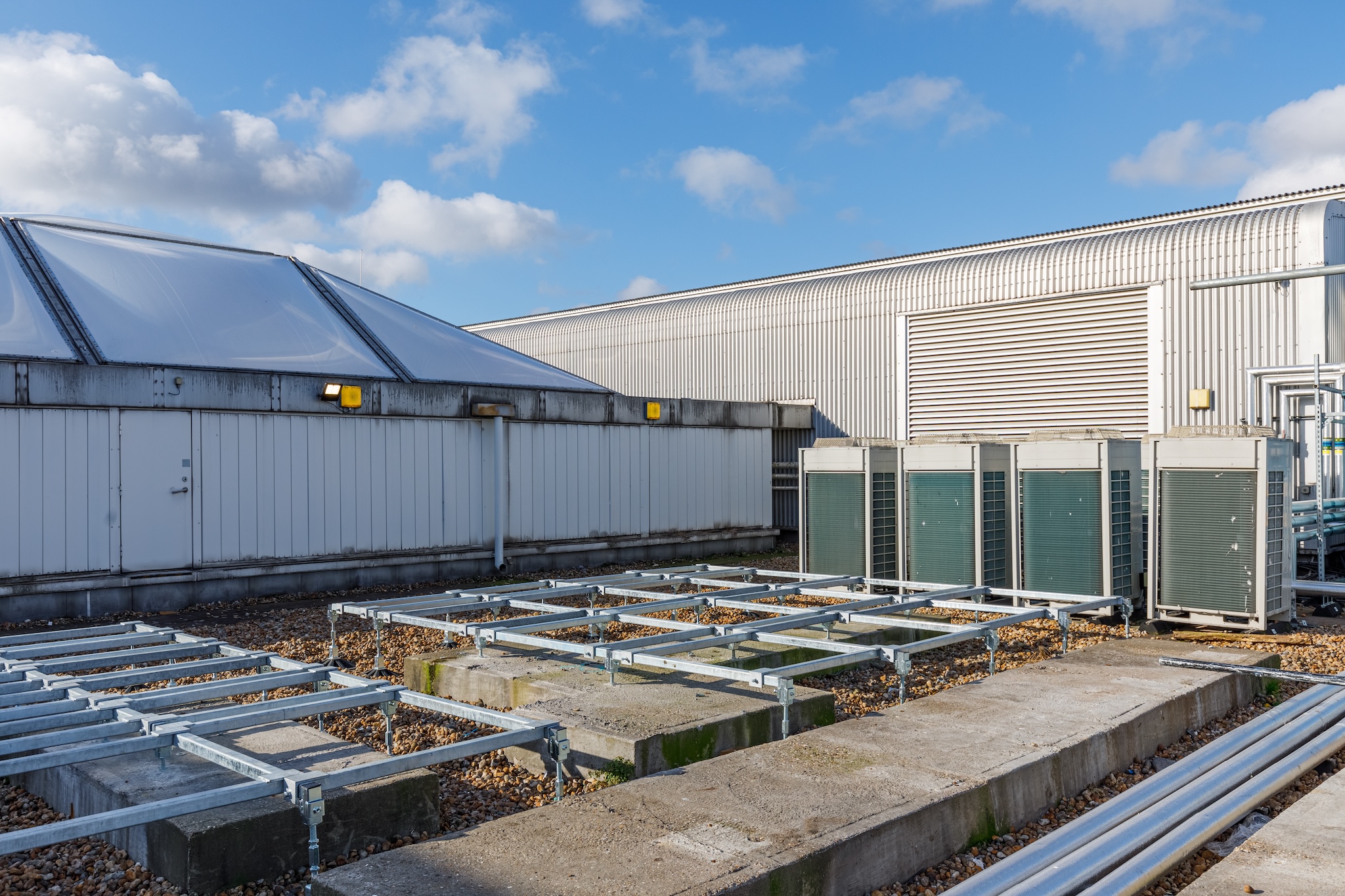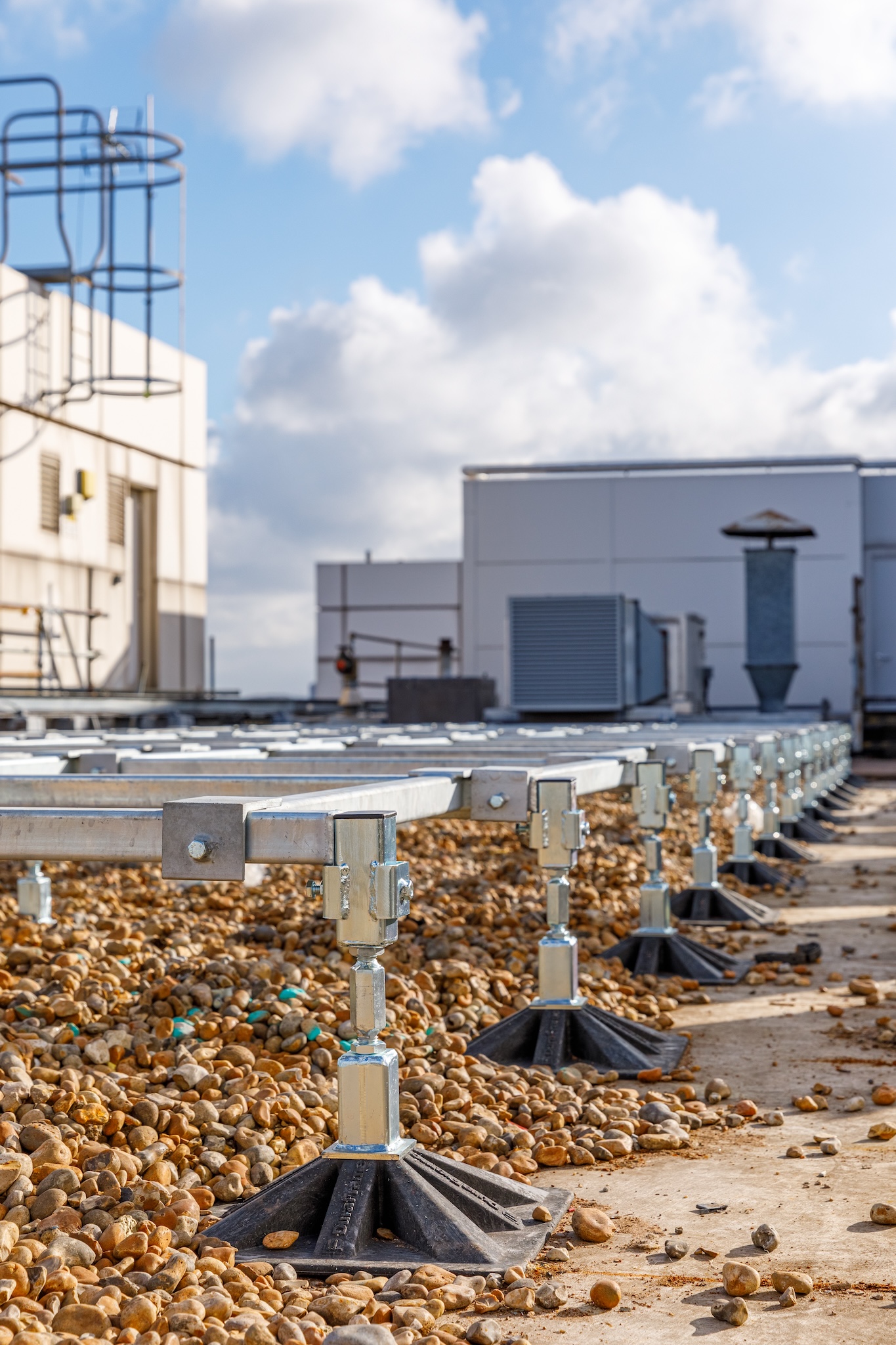 To address these requirements, Brymec supplied its innovative Duraframe Rooftop Support Systems, known for their durability and vibration-dampening properties. This system was ideal for supporting the AHUs without transmitting operational vibrations to the roof structure.